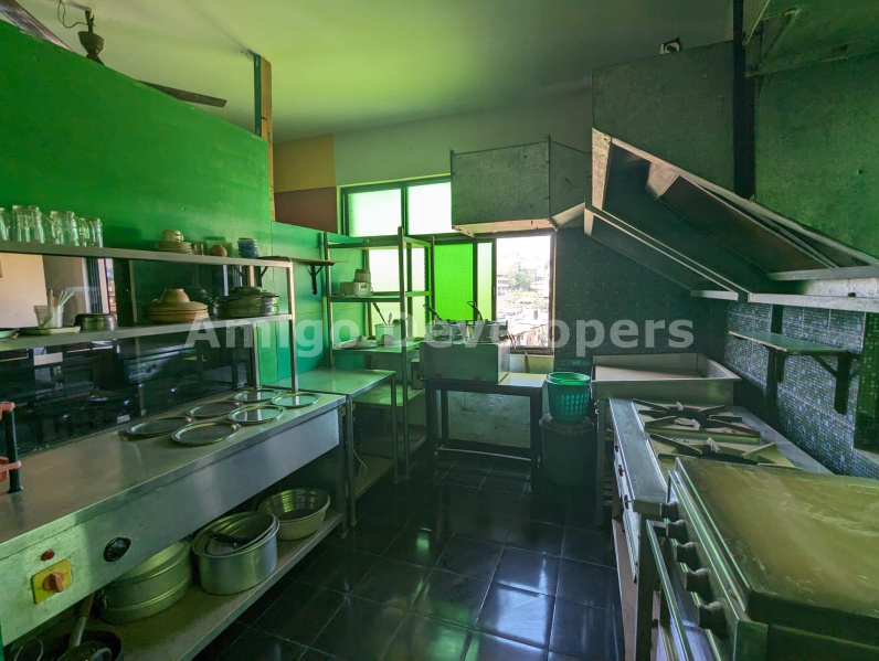 Shop for sale in Mapusa, 110 sqm. Located on the 2nd floor with lift access, 12-15 years old. Includes 3-phase electricity, water connection, restaurant furniture, and kitchen equipment. Maintenance is ₹8,000 per year. Open parking available. Ideal for a restaurant setup.